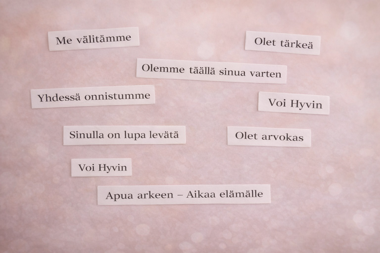 Toimintaamme ohjaavat välittäminen, luottamus, kunnioitus ja läsnäolo. Kuuntelemme ja tuemme sinun arkeasi juuri sellaisena kuin se on – jokainen kohtaaminen on meille tärkeä.